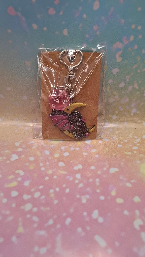 Black glitter and pink dragon moon d20 keychain