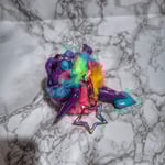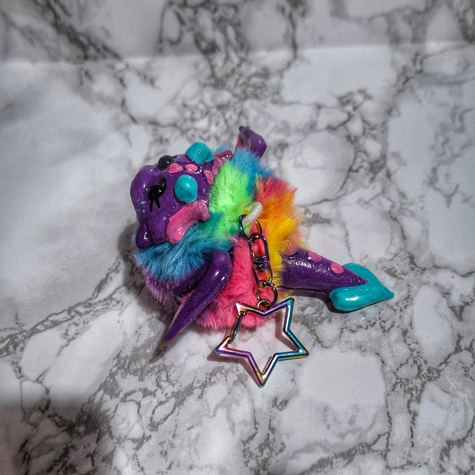 These are lightweight keychains made from polymer clay and then coated in resin. The head, tail, and wings are attached to a pom pom.