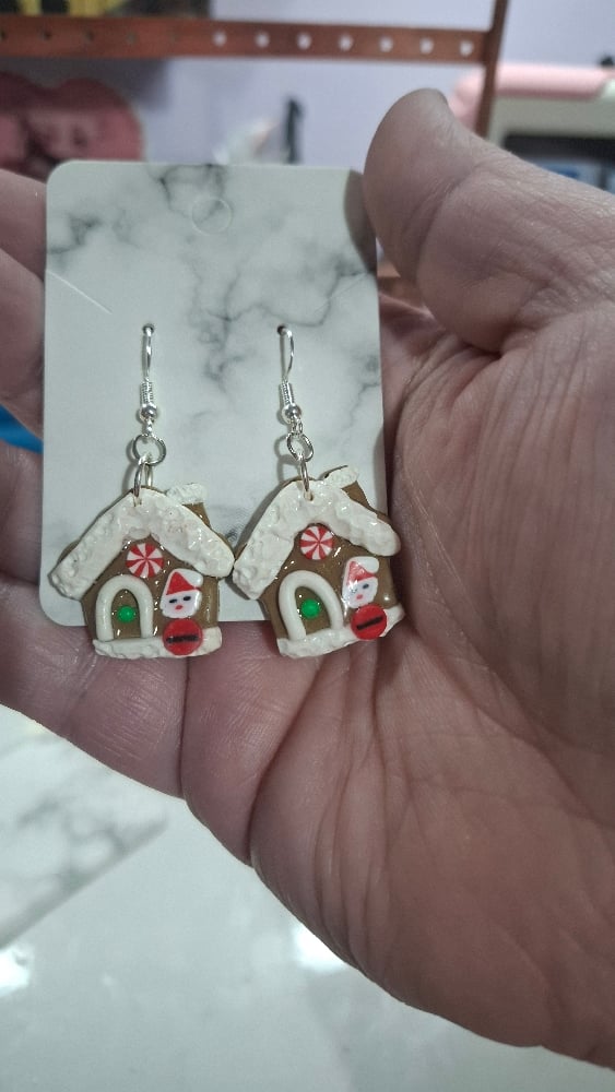 Gingerbread house Santa earrings